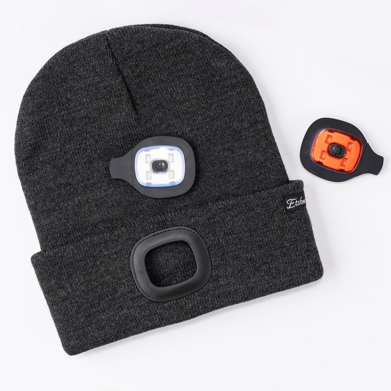 Etsfmoa Unisex Beanie with The Light,Front White Light and Rear red Light Dual LED Cap,Gifts for Men Dad USB Rechargeable Hat
