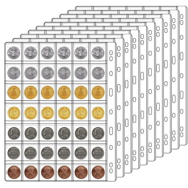 Ettonsun 10 Sheets 42-Pocket Coin Collecting Pages Coin Sleeves, Binder Inserts Coin Pocket Pages Collecting Sleeves for Most Coin Collection Holder Book Album