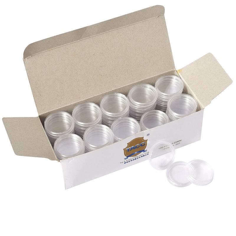 - 【Pack List】-- 100 Pieces coin capsules, enough for you to store many coins; Clear body allows you easy to see things inside
