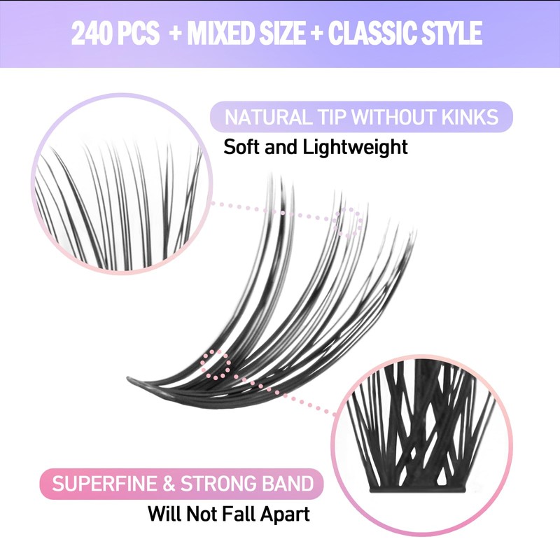 ETVITE Cluster Lashes 40D Individual Lash Clusters Extension Eyelash Clusters Mixed Size Soft Natural Look Handmade Volume Eyelash Clusters Home False Lashes (40D 8-16mm)