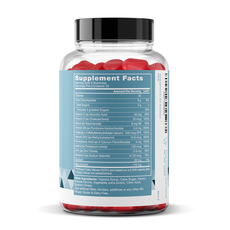 - FERTILITY GUMMIES LIKE NO OTHER: Our Conception for Her Fertility Gummies are packed with juicy strawberry flavor and expertly crafted to support women on their journey to conceive. Bursting with essential vitamins, minerals, and Myo-inositol, these gummies are not just a treat for your taste buds but a powerful ally in your fertility quest. With 10 times more Myo-inositol, active forms of vital B Vitamins, and essential minerals like Iodine and Zinc, our gummies provide unmatched fertility support. And let's not forget the taste C our gummies are irresistibly delicious, making your daily routine a joy, not a chore