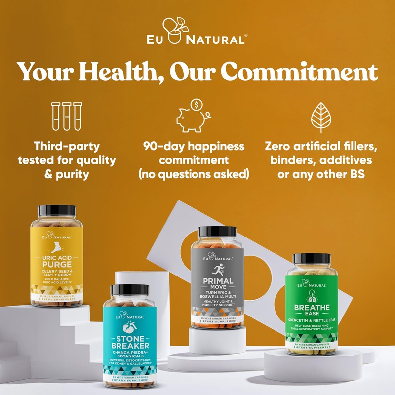 • EFFECTIVE AND EASY TO SWALLOW: Our natural, 100% vegetarian uric acid supplement is free of fillers, binders, and artificial ingredients - take two soft, easy to swallow capsules once daily with water