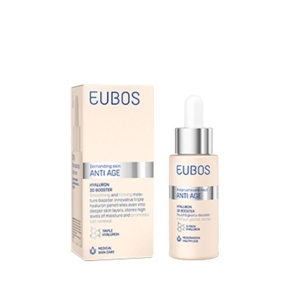 Anti-Aging Serum. Fills wrinkles in three dimensions, smoothes the skin and promotes the synthesis of collagen and elastin. The three different hyaluronic acid chain lengths provide the skin with intensive hydration and fill in wrinkles. The long chain stays on the surface of the skin, increases its hydration levels and helps reduce the depth of wrinkles. Medium and small chains penetrate the deeper layers of the skin, support cell renewal and improve its firmness, depending on their length. The vitamin C and vitamin B3promote the synthesis of collagen and elastin in the skin and strengthen the epidermal barrier. They protect the cells from oxidative stress and help the skin stay glowing. The Panthenol and Caffeine , moisturizing, increase skin elasticity and improve microcirculation.