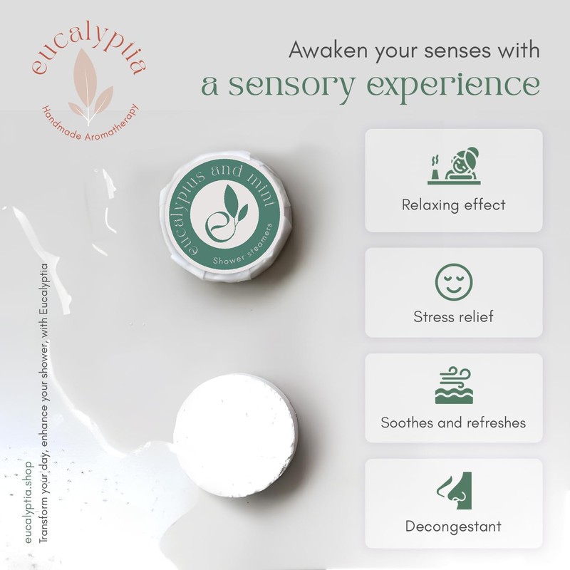 Eucalyptia: 10 tabletas de ducha con aceites esenciales para relajación.