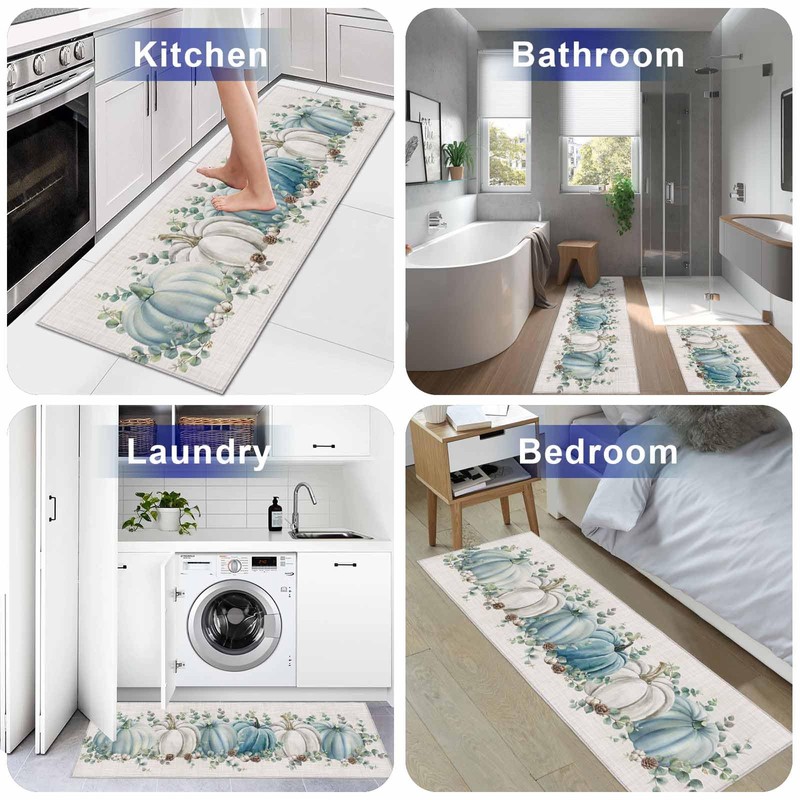 - 【Non-Slip Kitchen Runner Rug】Runner rugs with rubber backing. Standing desk mats may be used on multiple surfaces (tile, wood, ceramic, marble, etc). Open kitchen runner rug fully and place on even, flat, dry floor. Water under kitchen rug may result in slippage.