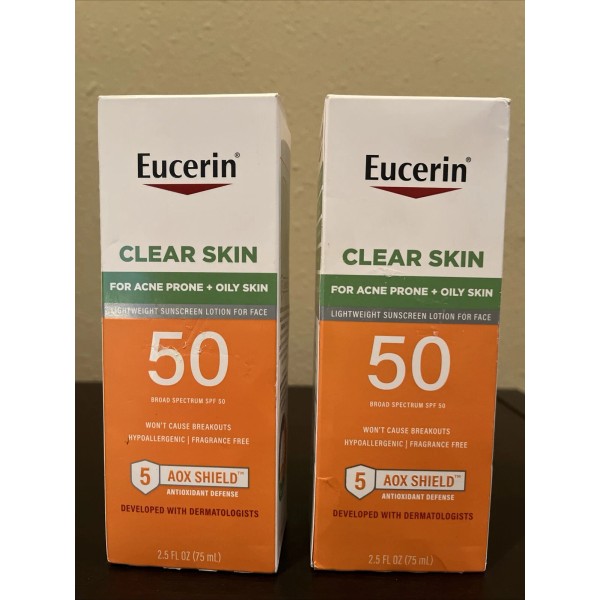 Eucerin (2) Eucerin Sunscreen Clear Skin SPF 50 Face Lotion Acne Exp. 09/2025