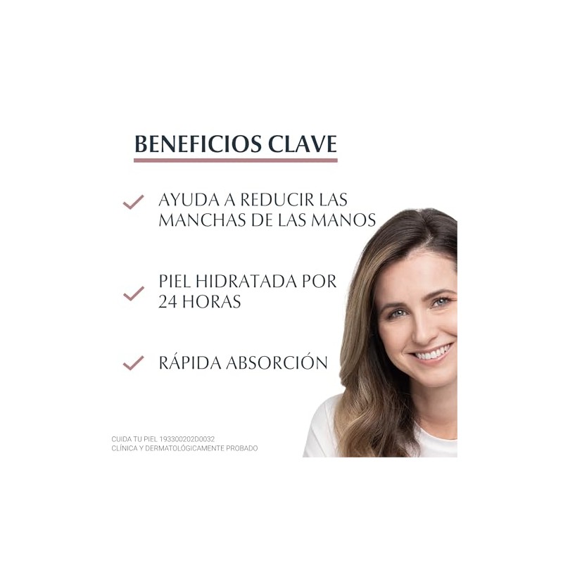 - La melanina, un pigmento natural de la piel, puede aumentar debido a la exposición al sol, cambios hormonales y el envejecimiento, lo que puede causar hiperpigmentación visible en forma de manchas oscuras y de la edad, haciendo que la piel luzca desigual. Para abordar este problema, creamos la Eucerin Anti
