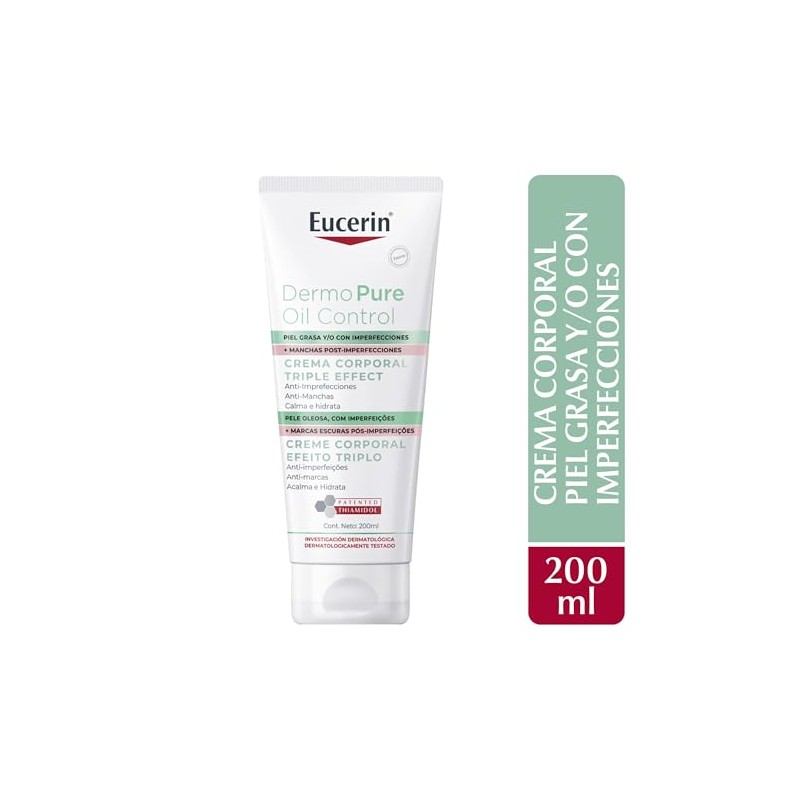 🌟 ⭐ Eucerin DermoPure Triple Effect Crema Corporal (200ml) Anti-Imperfecciones, Anti-Manchas, Anti-Brillo, Calma e hidrata, ideal para piel grasa o con imperfecciones ⭐ 🌟