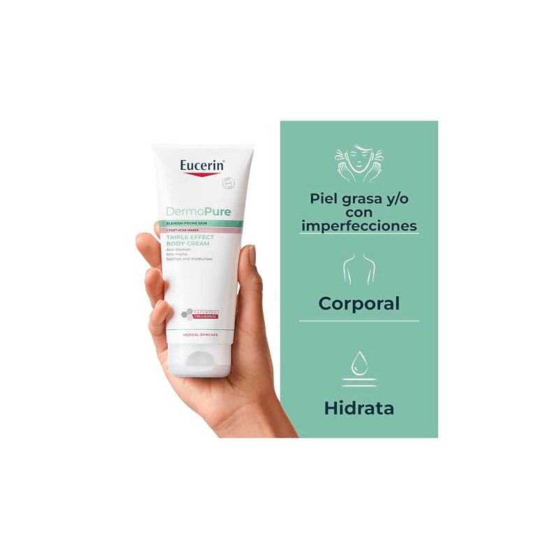 🌟 ⭐ Eucerin DermoPure Triple Effect Crema Corporal (200ml) Anti-Imperfecciones, Anti-Manchas, Anti-Brillo, Calma e hidrata, ideal para piel grasa o con imperfecciones ⭐ 🌟