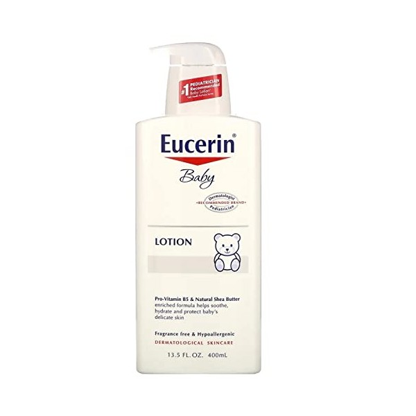 - Includes one (1) 13.5 fluid ounce bottle of Eucerin Baby Body Lotion, Fragrance Free Baby Moisturizer