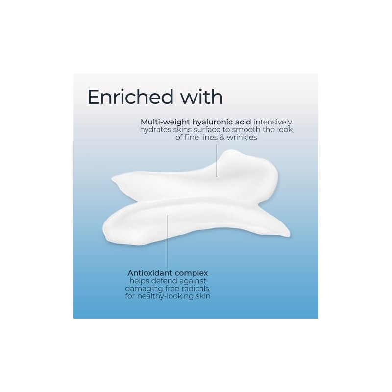 • Visibly Smooth Skin: Multi-weight Hyaluronic Acid (combines macro hyaluronic acid molecules with 40x smaller(1) micro molecules) enriched formula to intensively hydrate and visibly smooth skin