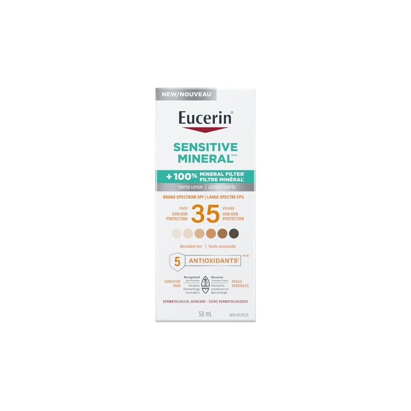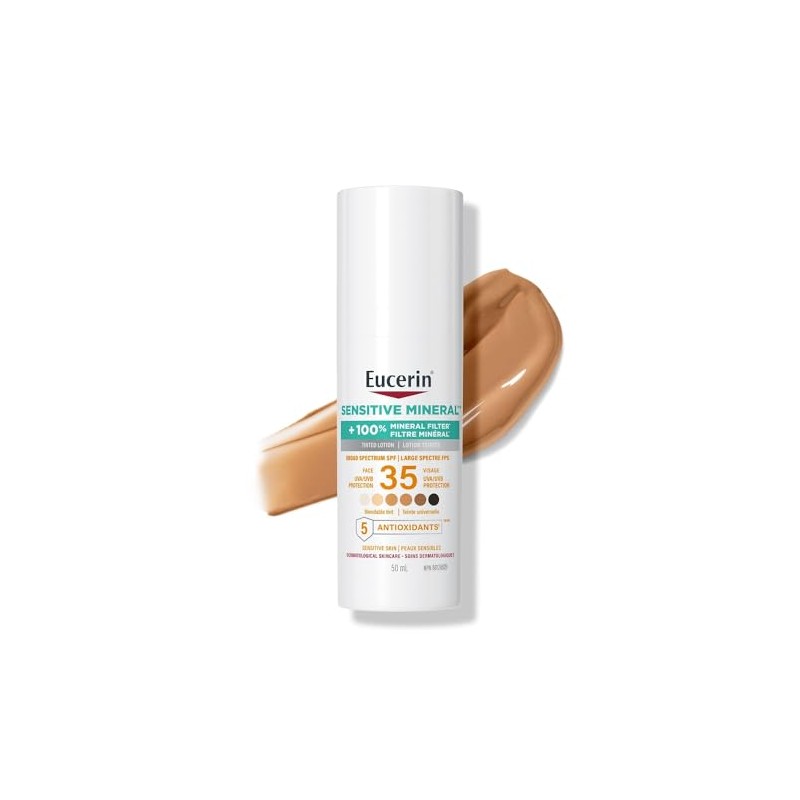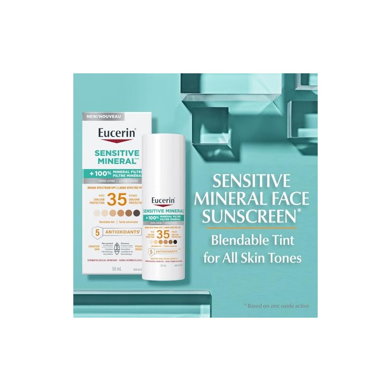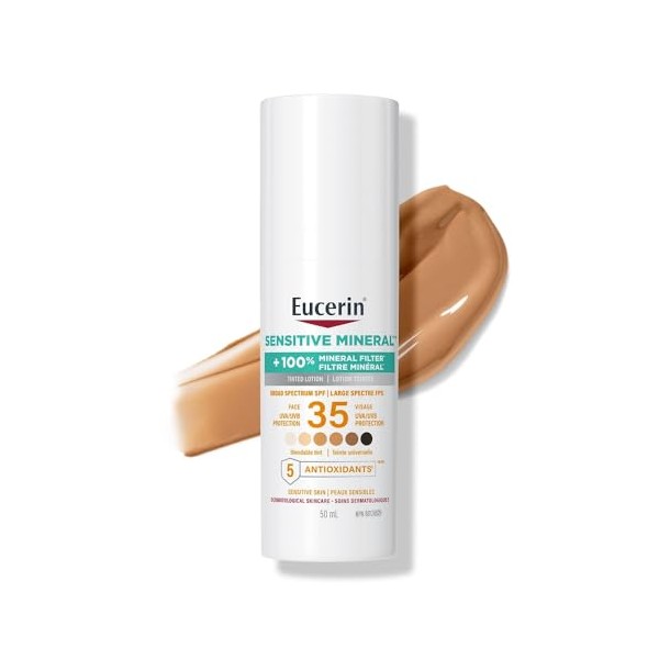 Eucerin Eucerin Sun Tinted Mineral Face Sunscreen Lotion SPF 35 | Blendable Tinted Mineral Sunscreen for all skin tones with Zinc Oxide and 5 Antioxidants | Daily Sunscreen | 50 mL pump
