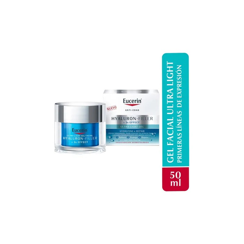 Eucerin Ultra-Light Gel Hydrating + Repair es una crema facial de día y de noche que proporciona una sensación ultra ligera y refrescante. Diseñada para otorgar hidratación inmediata, esta fórmula ayuda a atenuar las primeras líneas de expresión y mejora la apariencia de la piel.