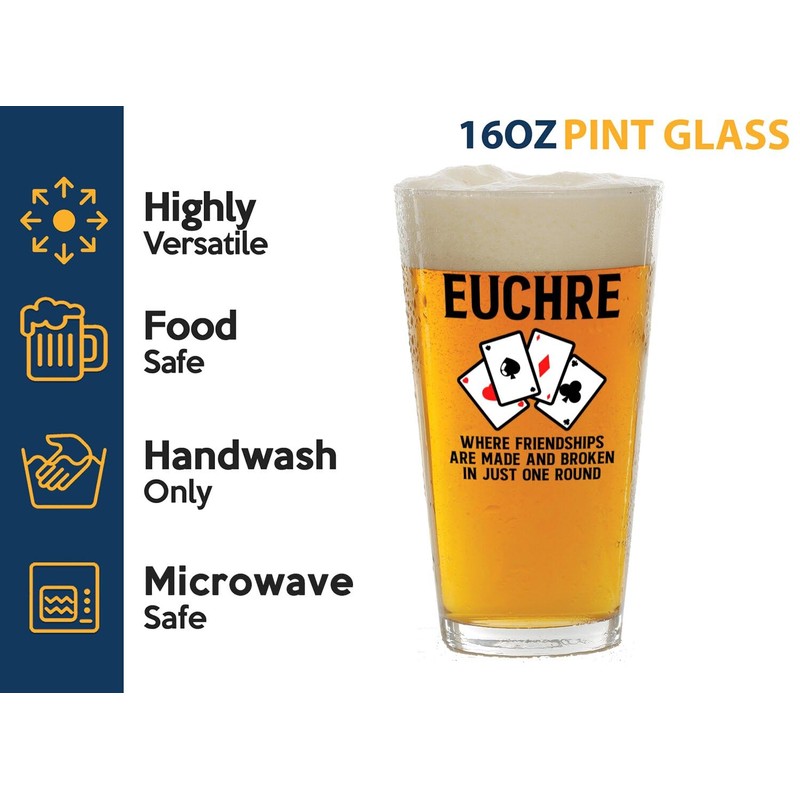 - Grab our euchre player pint glass now and be the outstanding party host in the world. Bottoms up!