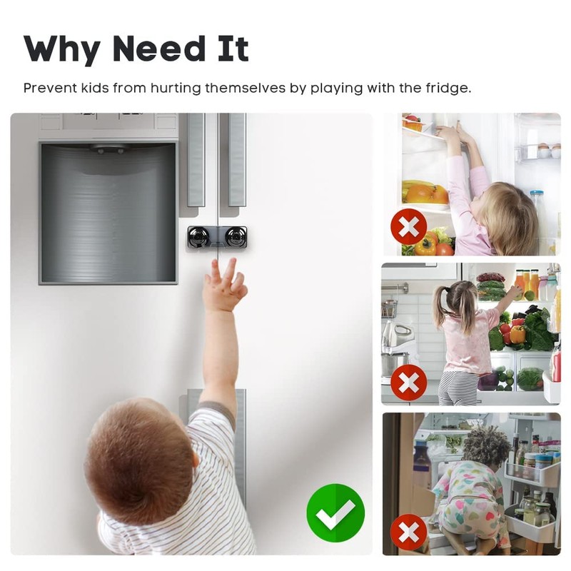 - Why Need It--Prevent babies from flipping the refrigerator and eating by mistake; prevent kids from hiding in the refrigerator; prevent kids from hurting himself by playing with the fridge. It is effective not only for babies, but also for pets.