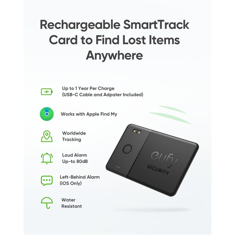 eufy Security eufy Security SmartTrack Card E30 (Black, 1-Pack), Rechargeable, Works with Apple Find My (iOS Only), Bluetooth Tracker, Perfect for Wallet, Passport, and Laptop, Water Resistant