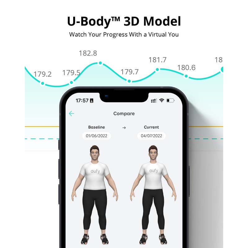 - 3D VIRTUAL MODEL: Watch your body's progress throughout your fitness journey with a virtual, U-Body 3D model, featuring you. Your avatar will match the proportions and measurements of your biceps, chest, waist, hips and thighs that you input, and give you a detailed visual of your changes.