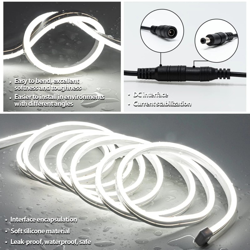 - Flexible & Waterproof: Compared to normal LED strips,this neon LED light strip are more flexible and you could easliy bend it for shapes you want. It can easliy adapt to kinds of cornners. Covered by silicone wrap,it's IP65 waterproof and sutable for indoors and outdoors usage.