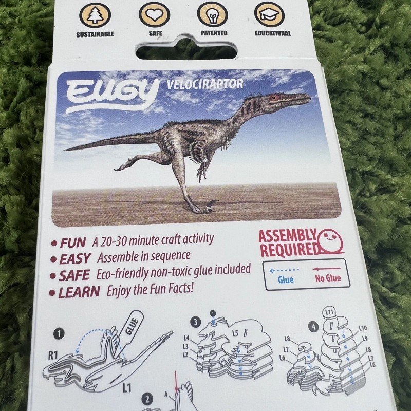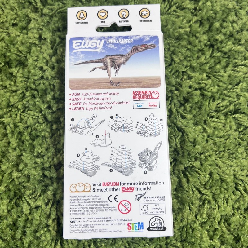 Eugy Raptor 3D Cardboard Model Kit New 005 Age 6+ Dinosaurs Velociraptor