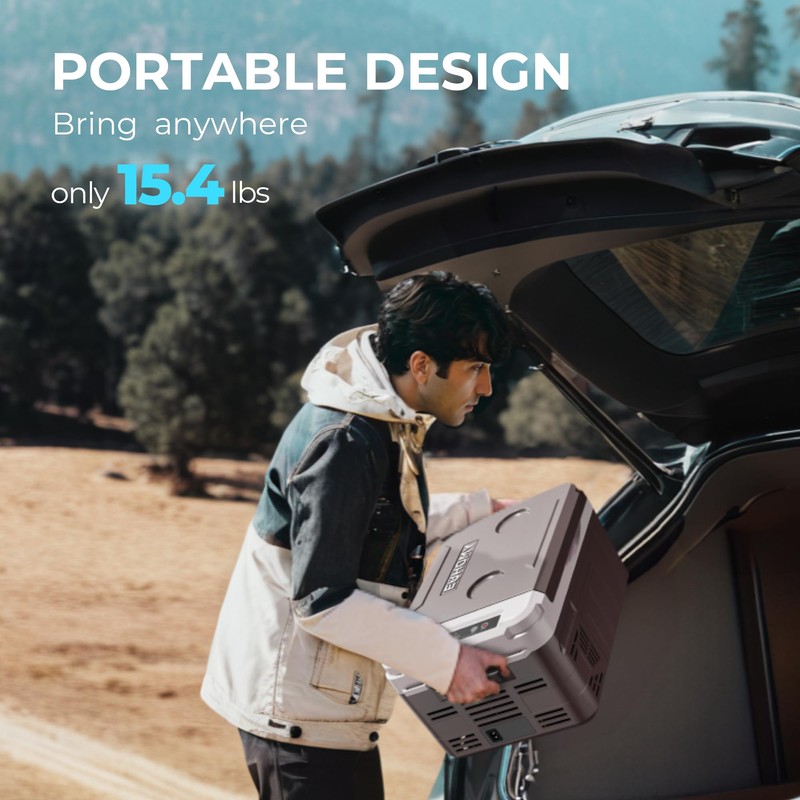 - Portable Degsin& Low Noise: The 12 volt refrigerator weighs only 15.4 pounds and comes with two handles, you can carry it anywhere. The 12 volt cooler operates with a low-noise cooling system, making only 45 decibels of noise when running, making it a quiet companion on your journey.