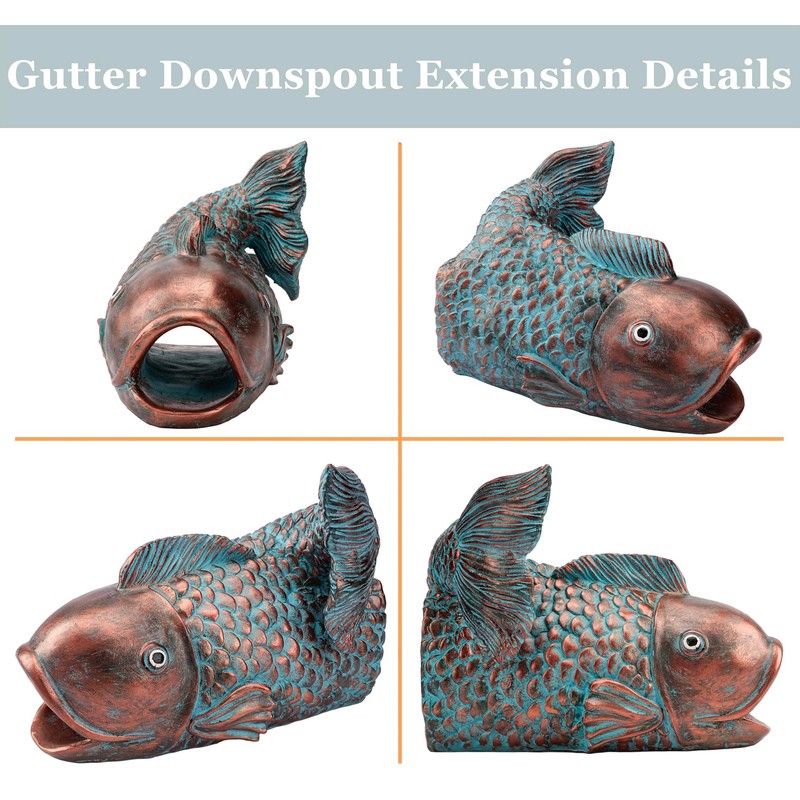 Euiroet's Real Fish Sculpture Gutter Downspout Extender is the perfect blend of functionality and charm for your garden. As a decorative yet practical solution, it serves as an excellent Gutter Diverter Rain, guiding water away from your home's foundation while adding a touch of whimsy. Made from eco-friendly resin, this downspout extension is not only durable but also a sustainable choice. The hand-painted details and weather-resistant finish ensure that it remains vibrant and beautiful through all seasons. Whether you're looking to enhance your garden's aesthetics or searching for a unique gift, this Decorative Gutter Extension Downspout is a delightful addition. It fits rectangular downspouts up to 3"x 4", making it easy to install and integrate into your existing setup. Elevate your outdoor space with this charming and functional Gutter Downspout Decoration, and enjoy a splash of fun and elegance in your garden. This Splash Block and gutter downspout extensions are designed to be both practical and visually appealing, ensuring that your rain gutter downspout extension not only functions well but also adds a unique style to your home. With its compatibility and durability, this downspout diverter is a must-have for any homeowner looking to add a bit of personality to their outdoor living space.