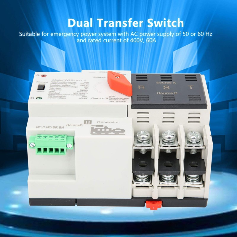 • 【Multifunción】 El interruptor de transferencia automática es adecuado para sistemas de energía de emergencia con alimentación de de 50 o 60 Hz y corriente nominal de 400V, 60A.