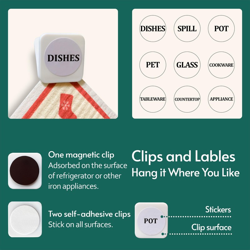 - Convenient Storage Solution: Each papaya reusable paper towels with hook set includes 8 dish cloths in four distinct styles, accompanied by 2 self-adhesive clips, 1 magnetic clip, and 9 labeling tags. Personalize the role of each cloth and easily organize them on walls, countertops, or refrigerators. Keep your kitchen tidy and well-ordered with this convenient storage solution.