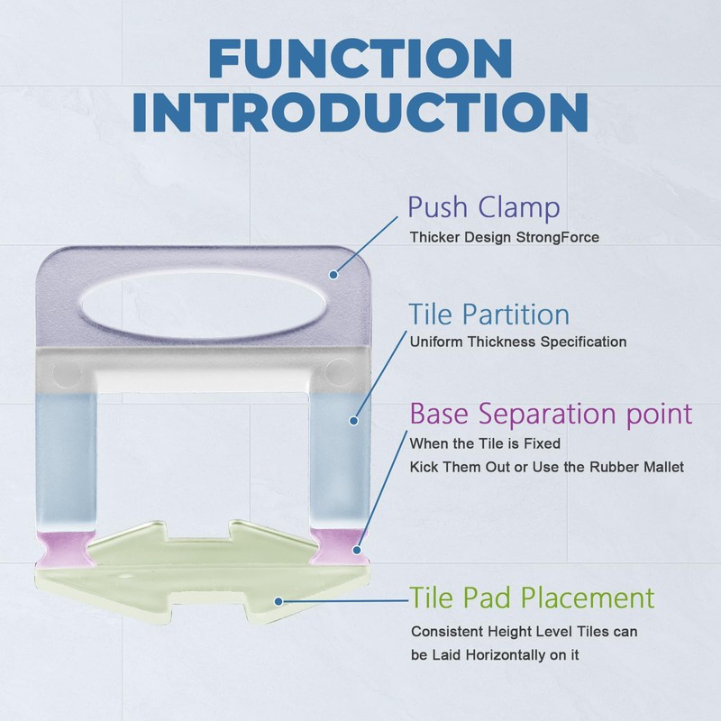 • Tile Leveling Clips: Tile leveling clips - the perfect tool for floor wall installations. Ensures flatness between tiles, levels, aligns spaces and holds tiles in place to prevent slippage, ensures a consistent surface and helps correct tile curvature