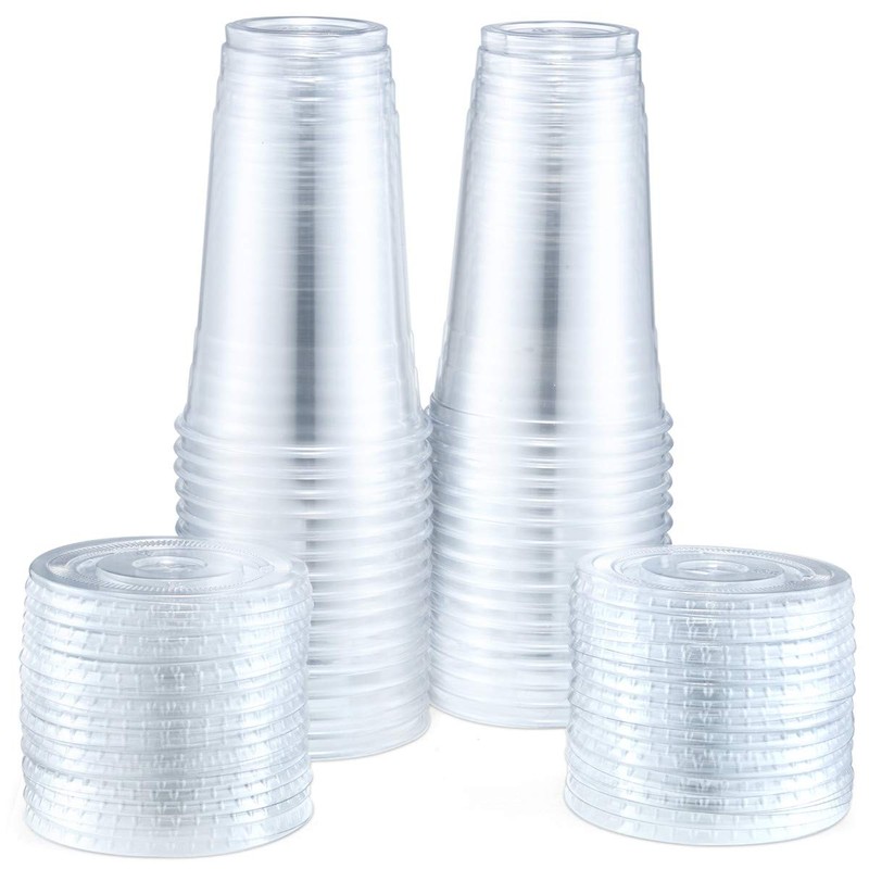 Quantity: Value Set of 50 Clear Plastic Cups 24 oz, 50 Plastic Flat Lids.