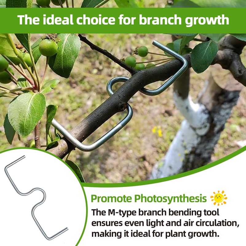 • 【Unique Design】: Garden tree branch spreads benefits from the innovative M-shaped design, which controls the bending of the branches and promotes the effective stretching and horizontal growth of the branches. The design of the fruit tree branch spreader helps reduce labor, minimize effort and provide a balanced tree structure, increasing crop yields.