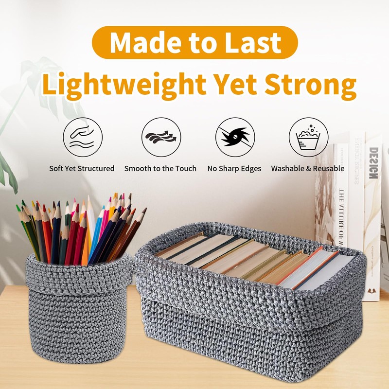 Our high quality crochet basket set is the ideal solution for the bathroom, living room, nursery, office or entryway - it helps you design any room with style and order.