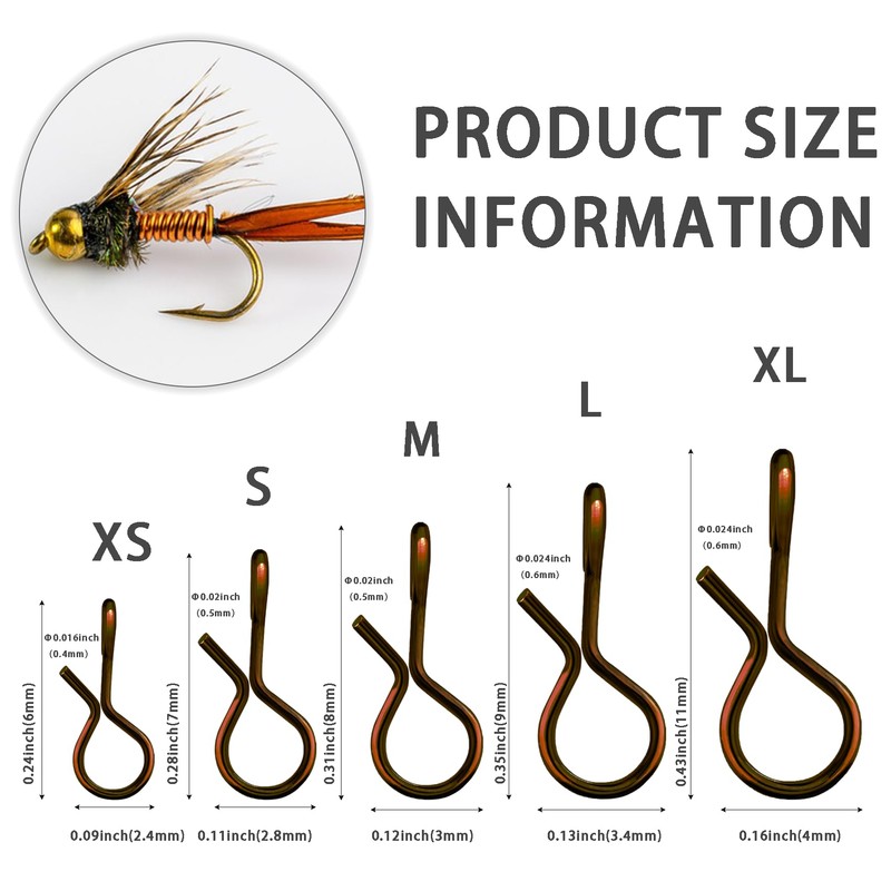 - Enough Quantity: 150PCS of fly fishing snaps in 3 different sizes (XS, S, M), 50 of each size. Or 250PCS in 5 different sizes (XS, S, M, L, XL). You can also choose 100PCS single size pack. Give you the power to choose the perfect fit for each unique fishing activity.