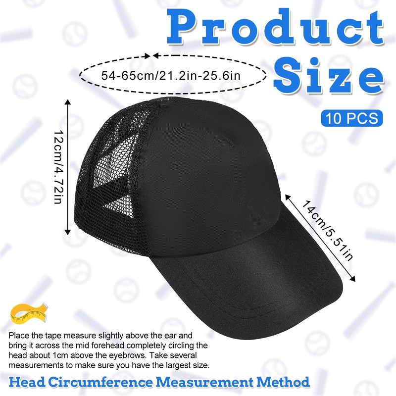 - 【Versatile Use】This 10-pack bulk set of polyester bulk mesh trucker hat serves multiple purposes – daily fashion accessory, outdoor sports gear, or customizable base for events. The neutral black color and universal sizing make them suitable for creating coordinated group outfits, corporate merchandise, or gifts for family and friends.