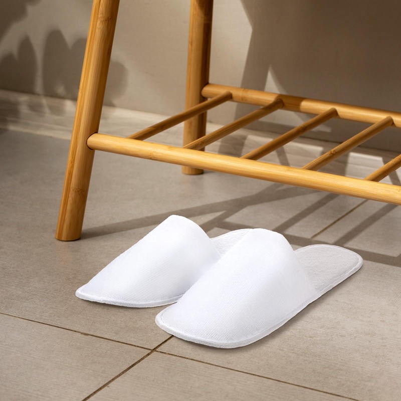 - Non-Slip Safety: Designed with a non-slip EVA sole featuring an anti-skid pattern, these white closed toe spa slippers ensure reliable traction on wet surfaces, from bathrooms to spas. This attention to safety minimizes the risk of slipping and enhances guest confidence during use.