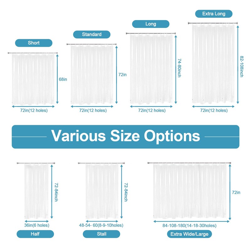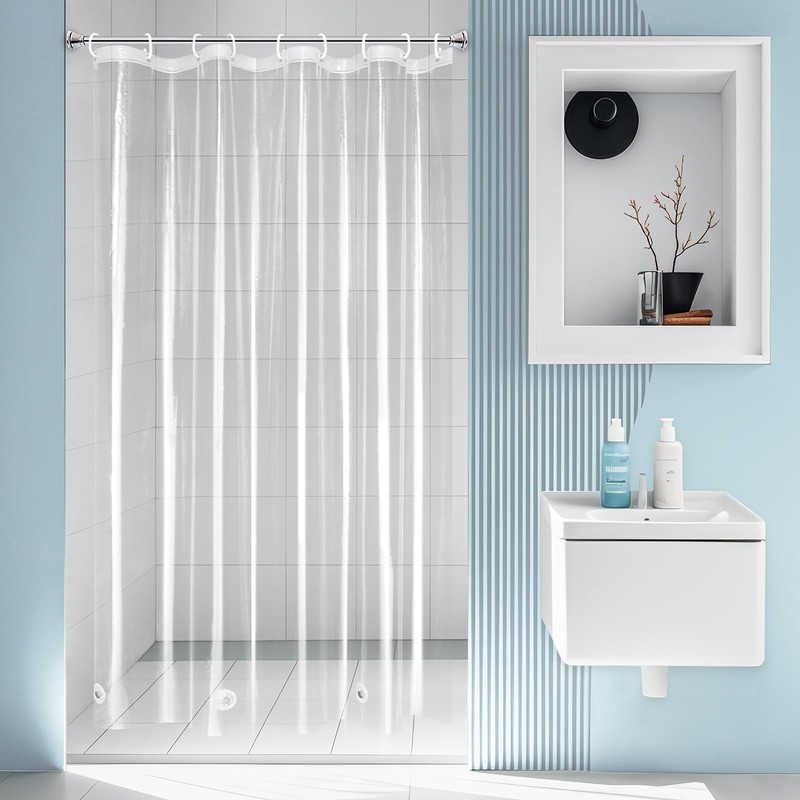 - BPA-free and Soft: Made of high-Grade PEVA material, different from PVC, it keeps your bathroom away from harmful chemicals and odors. The heavy-duty plastic shower liner features a proper thickness of 9G, soft touch, and increased durability
