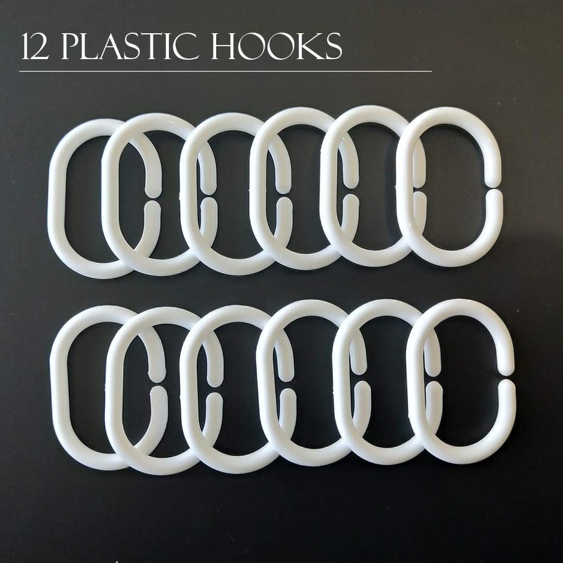 - Incluye 12 ganchos de plástico: los anillos de plástico blanco son fáciles de decorar cada cortina de ducha del baño y nunca se oxidan. Y el forro funciona tanto con barras de ducha rectas como curvas.