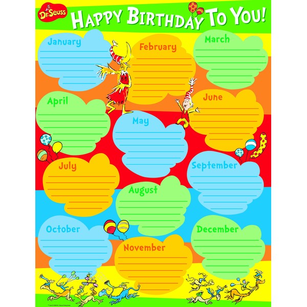 Eureka Dr. Seuss Birthday Chart Poster for Kids, 17'' W x 22'' H, Model:837465