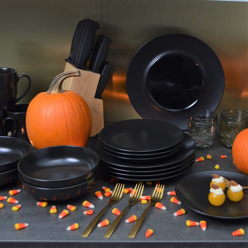 Size: **16pc Dinnerware Set** | Color: **Black**