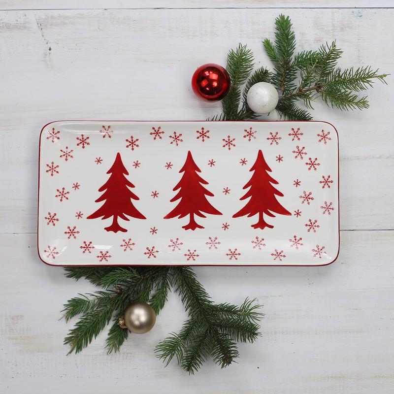 Euro Ceramica Winterfest Christmas Collection, 14" Rectangular Serving Platter, Red/White