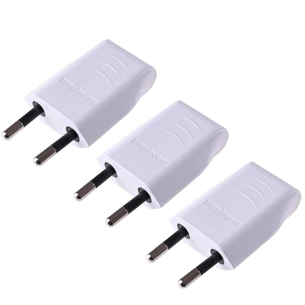 Euro Plug 6A, Plug 230 V, Flat Plug, Schuko Plug - Flat, Euro - 2-Pin Flat Plug, European Flat Plug, Easy Installation, 3 Pieces (White)
