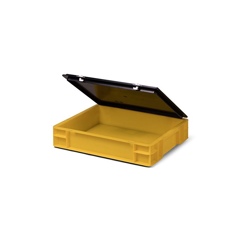 Euro Transport Stacking Box/Storage Container, Yellow, with Black Lid 400 x 300 x 86 mm (L x W x H), Closed Walls and Base, Made of PPN