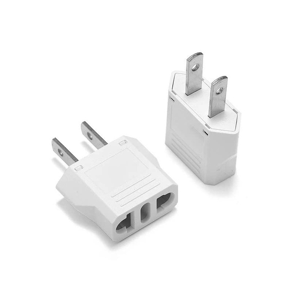 Europe to United States Travel Power Adapter to Connect European Electrical Plugs to North American Power Outlets for Cell Phones, Tablets, eReaders, and More (2-Pack, White)