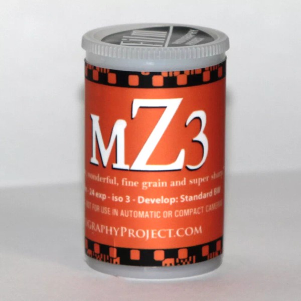 Svema Mz3 is a black & white, blue sensitive film rated at ISO 3. Photographer Larry Buechler described the film as "slow, wonderful, fine grain and super sharp." He went on to say that Mz3 produces "creamy, dreamy highlights that seem to float on the image like a mist."