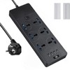 European Power Strip, Jumpso Universal Power Strip with 6 AC Outlets and 4 USB Ports, 110-240v, 3000w Power Strip with EU Plug, 6Ft, Electrical Outlet Extender for Travel Home Office Essentials