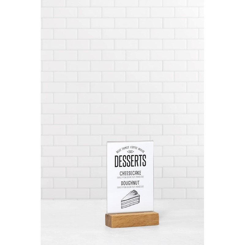Europel A6 Premium Crystal Clear Acrylic Table Display Stand Sturdy and Durable FSC Certified Oak Wood Base Two Sided Display for Restaurants, Hotels, Conferences, Festivals
