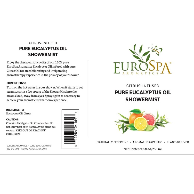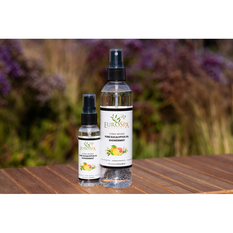 EuroSpa Aromatics Pure Eucalyptus Oil ShowerMist and Steam Room Spray, All-Natural Premium Aromatherapy Essential Oils - Citrus Infused, Duo Pack, 8oz and 2oz