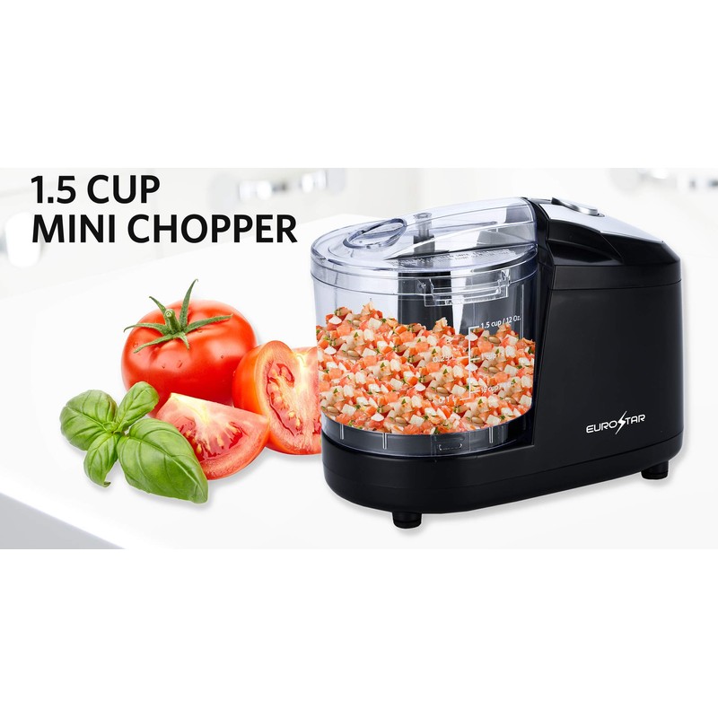 EUROSTAR 1.5 Cup One Touch Electric Mini Food Chopper (Black)