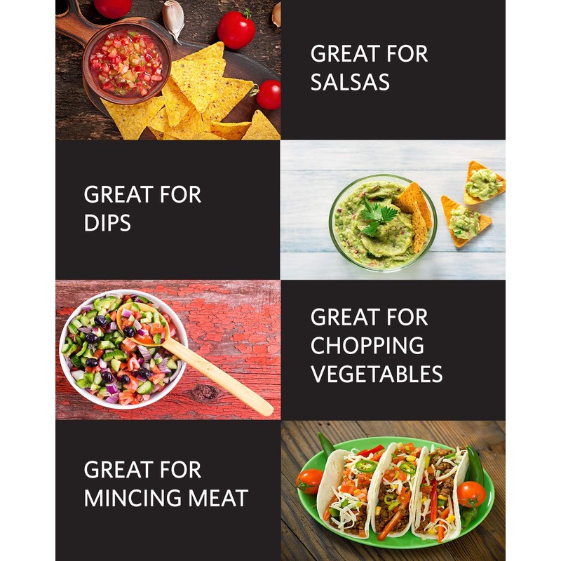 - Sharp and durable stainless steel blades for precise multi-use chopping