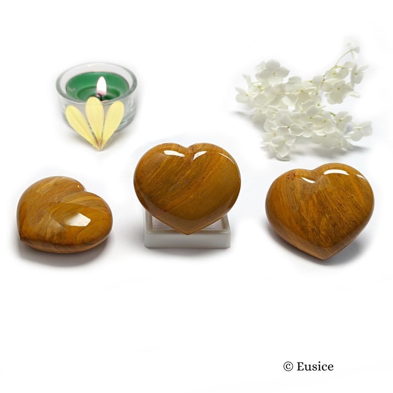 Eusice - Heart Yellow Jasper, Natural Stone Wellbeing, Handmade Cut Crystal for Lithotherapy, Chakra, Meditation