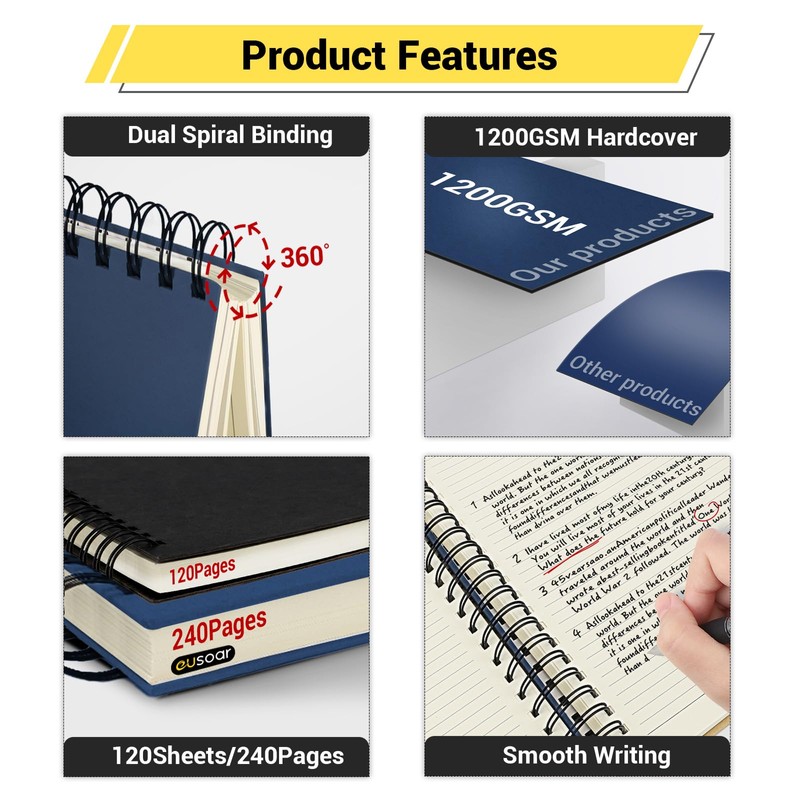 - 【Thickened Hardcover】The reinforced 1200gsm hard cover is thicker and more sturdy, which greatly protect the inner page well, such as resist curling at bottom.
